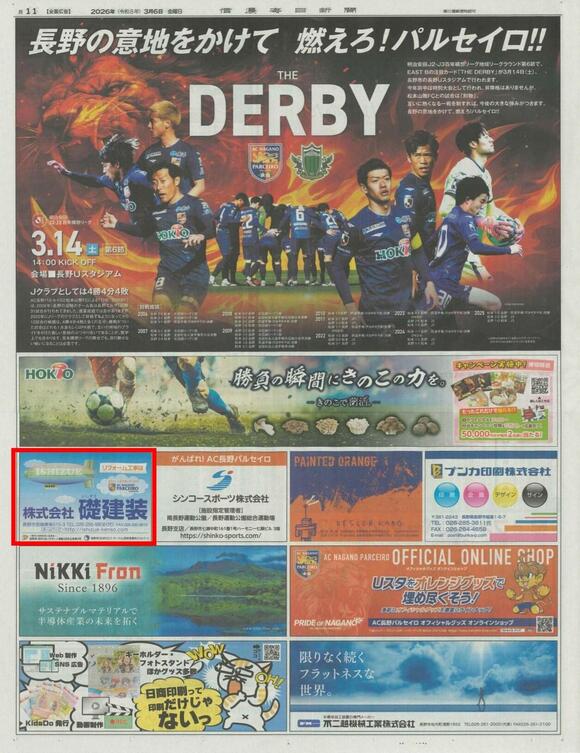 3/6付け信濃毎日新聞にて広告掲載しました☺